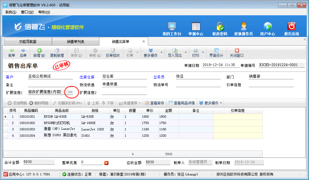 信管飛RMS、信管飛倉庫管理軟件及信管飛送貨單軟件都支持直接修改已審核單據的擴展信息,有操作權限的操作員可以直接對已審核單據的擴展信息進行修改,本篇文章我們以信管飛倉庫管理軟件為例來詳細介紹一下如何設置操作員不可修改已審核單據的擴展信息? 在功能導航窗點“系統管理”—》“操作員及授權”即可進入“操作員管理及授權”界面,選中操作員賬號,在“其他操作權限”界面將“可修改已審核單據的擴展信息”權限勾選取消,如下圖所示,設置操作員賬號“張亞”不可直接修改已審核單據的擴展信息,設置完成后點擊“保存設置”按鈕保存權限設置。