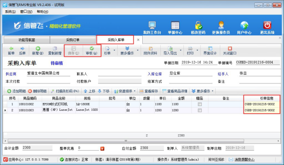 信管飛RMS軟件是集“采購管理、銷售管理、庫存管理、往來賬管理”一體的進(jìn)銷存軟件,軟件可引用訂單生成對應(yīng)的采購入庫單和銷售出庫單。軟件默認(rèn)引用訂單需要訂單處于審核狀態(tài),否則引用不了(如下圖所示),有的客戶存引用未審核的訂單,本文示范下如何設(shè)置? 在功能導(dǎo)航窗點(diǎn)擊“系統(tǒng)管理”→“系統(tǒng)參數(shù)配置”→“業(yè)務(wù)參數(shù)”可以打開“業(yè)務(wù)參數(shù)”配置界面,在業(yè)務(wù)單據(jù)相關(guān)參數(shù)內(nèi)打鉤啟用“引單可選擇未審核的訂單”參數(shù),然后點(diǎn)擊“保存”按鈕保存設(shè)置,如下圖所示: 參