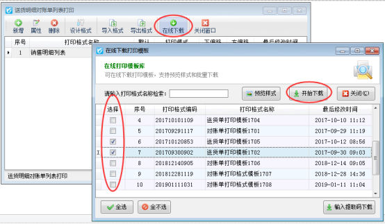 信管飛送貨單軟件、信管飛倉庫管理軟件、信管飛RMS等都支持自定義打印格式模版,軟件中內(nèi)置有多個打印格式模版,并支持在線下載打印格式模版,本篇文章以信管飛送貨單軟件為例詳細(xì)介紹一下如何在線下載對賬單打印格式模版? 在功能導(dǎo)航窗點(diǎn)擊“業(yè)務(wù)處理”—》“送貨明細(xì)對賬單”即可打開送貨明細(xì)對賬單界面,如下圖所示:圖1 然后在工具欄點(diǎn)擊“打印”—》“打印格式設(shè)計(jì)”打開“送貨明細(xì)對賬單列表打印”窗口,如下圖所示:圖2 在打印格式設(shè)計(jì)窗口可以查看軟件內(nèi)置的打印格式模版