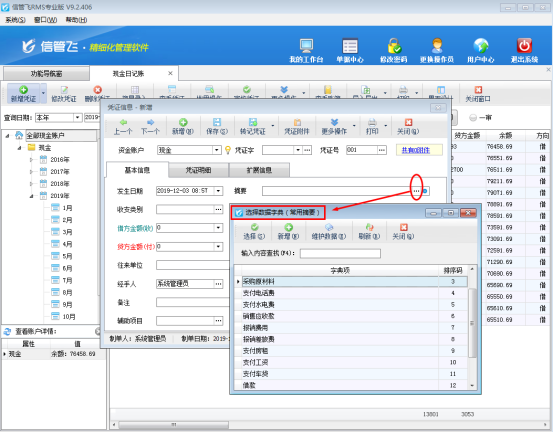 信管飛RMS標準版和專業(yè)版都包括出納模塊,可以登記出納日記賬憑證,出納憑證摘要默認可以手動隨意輸入。有些客戶對出納憑證摘要需要進行規(guī)范管理,登記憑證時摘要只能選擇不能隨意輸入該如何設置呢?本篇文章以信管飛RMS專業(yè)版為例介紹一下如何設置出納憑證摘要只能選擇不能隨意輸入。 在功能導航窗點擊“系統(tǒng)管理”——》“系統(tǒng)參數(shù)配置”——》“業(yè)務參數(shù)”可以進入到“業(yè)務參數(shù)”配置界面,在出納憑證相關參數(shù)內(nèi)打勾啟用“出納憑證摘要只能選擇不能隨意輸入”參數(shù),如下圖1所示。圖1 設置完成之后,在功能導航窗點