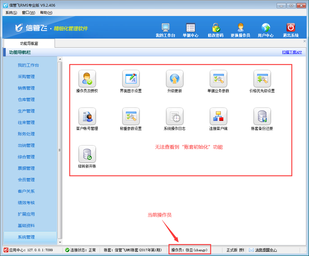 賬套初始化一般用于在正式使用軟件前,對賬套中的數(shù)據(jù)進行初始化,以便重新錄入數(shù)據(jù)。一般在試用軟件期間會輸入一些試用的數(shù)據(jù),比如采購入庫單、銷售出庫單或一些訂單等信息,當試用結(jié)束后想刪除這些無用的數(shù)據(jù)錄入正式數(shù)據(jù)時,可以通過本系統(tǒng)的“帳套初始化”功能來一次性清除,方便快捷(如下圖所示)。 執(zhí)行賬套初始化操作后,會刪除賬套內(nèi)相應的數(shù)據(jù),因此務必提前做好備份,謹慎操作!為了避免操作員誤操作,導致數(shù)據(jù)丟失,軟件內(nèi)支持設置操作員不可進行賬套初始化操作,下面以信管飛RMS為例來演示一下具體的操作步驟。