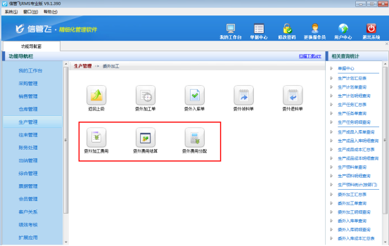 實際的企業生產業務中經常會涉及委外代加工業務,有時候需要委托外部工廠幫我們生產一些配件,有時候需要幫忙生成半成品,然后委外生產的成品或半成品,再進入我們車間進行再加工(如包裝封箱、或二次加工等)。信管飛RMS標準版、專業版及以上版本可以購買 “委外加工管理”擴展功能模塊來管理此業務。 在功能導航窗,點擊“生產管理”—》“委外加工”,即可進入委外加工管理界面,如下圖所示:圖1 對委外加工需要我們提供原材料(即我們采購的原材料),需代加工廠生產時,我們出庫運送給代工廠(也有可能采購的原材料