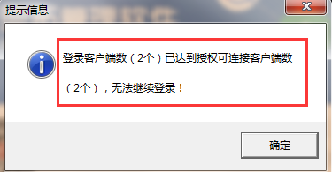 登錄時(shí)如果出現(xiàn)如下提示,說(shuō)明連接用戶數(shù)已經(jīng)超過所購(gòu)買的云應(yīng)用用戶數(shù)。如果需要升級(jí)增加云應(yīng)用用戶數(shù),可聯(lián)系我們客服。