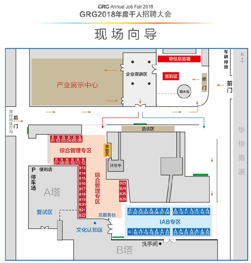 首先甩個招聘會現場功能區分布圖