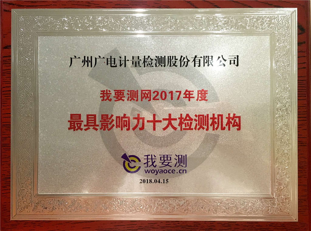廣電計(jì)量當(dāng)選2017年最具影響力十大檢測機(jī)構(gòu)