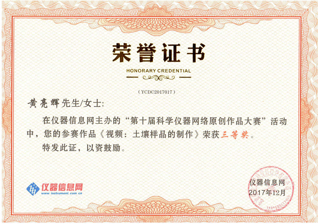 此外,廣電計(jì)量環(huán)保檢測技術(shù)工程師黃亮輝憑借原創(chuàng)視頻《土壤樣品制備》,在763篇作品中脫穎而出,榮獲科學(xué)儀器年度網(wǎng)絡(luò)原創(chuàng)作品大賽三等獎(jiǎng)。作品用清晰專業(yè)的視頻視角解讀了工作量巨大、實(shí)際操作困難的土壤樣品制備過程,其完整的內(nèi)容、專業(yè)的講解為行業(yè)人員提供了較高的參考價(jià)值。