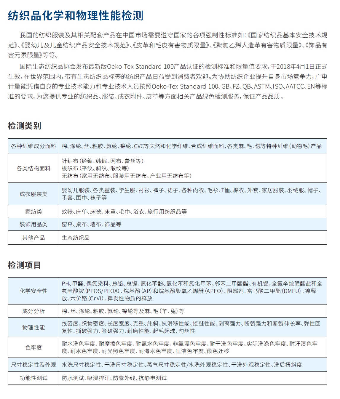 廣電計(jì)量紡織、服裝產(chǎn)品及相關(guān)配套產(chǎn)品一站式檢測(cè)服務(wù)方案