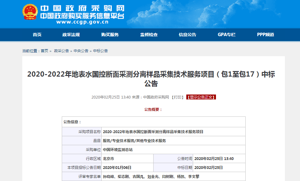 今年1月,為盡可能對全國重要水域的水環(huán)境進行監(jiān)控,持續(xù)保障我國地表水采測分離樣品采集工作順利進行,推動“十四五”期間全國水環(huán)境評價與質(zhì)量考核,中國環(huán)境監(jiān)測總站就“2020-2022年地表水國控斷面采測分離樣品采集技術(shù)服務(wù)項目”進行了公開招標(biāo)。廣電計量憑借先進的技術(shù)能力以及豐富的服務(wù)經(jīng)驗,順利通過專家審核,中標(biāo)總金額為 22,680,302元,將承擔(dān)全國6省(自治區(qū))227個地表水國控斷面的樣品采集以及pH、溶解氧、電導(dǎo)率、水溫、濁度、透明度、鹽度等項目的現(xiàn)場監(jiān)測工作。