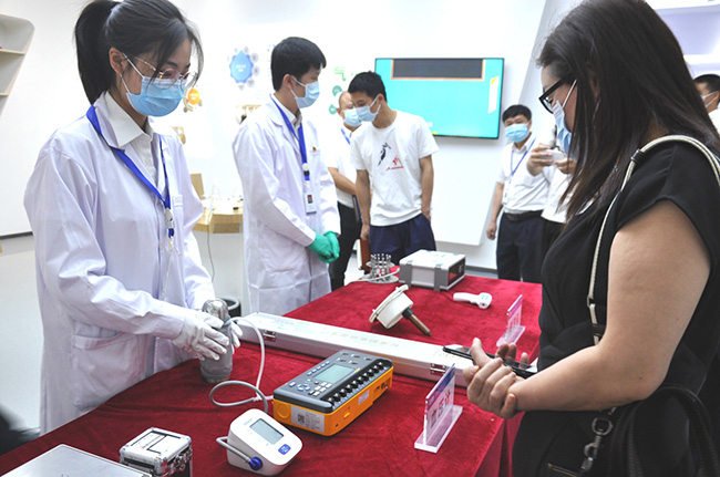活動以觀看“精準抗疫,助力復工復產”計量主題視頻短片拉開序幕,讓參觀人員充分認識到計量的重要性。為了讓來賓更加直觀地感受計量技術的重要作用,湖南廣電計量在展廳特別設置了抗疫儀器設備計量演示區,對測溫儀、血壓計等與抗疫息息相關的儀器設備進行現場計量演示和講解咨詢。“這是什么儀器,可以做哪些計量?”“這個儀器的工作原理是什么?如何保證額溫槍和耳溫槍量值準確?”……參觀過程中,大家對計量工作表現出極大的興趣與熱情,提出很多生活中遇到的困惑和問題。對此,技術人員一一作出解答。