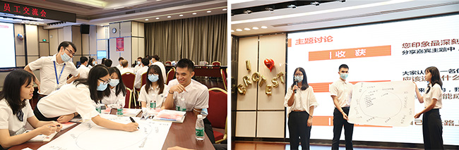 儀式結(jié)束后,公司安排多位應(yīng)屆生身份入職,實踐經(jīng)驗豐富的“老”員工與各位“新生力”進(jìn)行面對面交流。“老”員工們分享自己在公司成長中的點點滴滴,傳授自己的工作經(jīng)驗,幫助“新生力”答疑解惑。“新生力”們也紛紛向前輩取經(jīng)學(xué)習(xí),積極提問,一同討論。