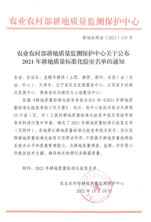 2021年耕地質(zhì)量標(biāo)準(zhǔn)化驗(yàn)室名單
