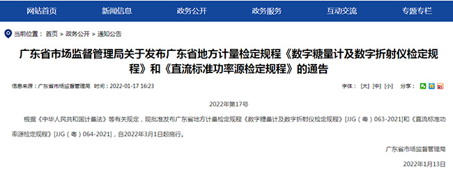 近日,廣東省市場監(jiān)督管理局發(fā)布公告,由廣電計量技術質量部、計量研究院技術專家團隊編寫的JJG(粵)064-2021《直流標準功率源檢定規(guī)程》正式發(fā)布,將于2022年3月1日起施行。