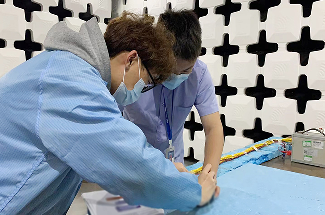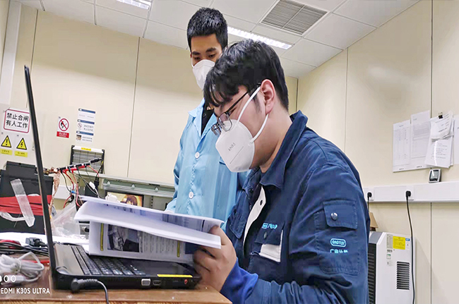 在一分一秒流逝的時間面前,居住在非封控管理小區的上海子公司黨支部黨員、電磁兼容檢測實驗室主任瞿軍早上接到消息后顧不上仔細收拾,立即主動趕至公司協調測試排期;同時通過電話、微信群聯系可值班員工趕回公司,迅速集結起一支攻堅小組。這意味著他們在一段時間內將始終留在公司不能回家,等于主動放棄了與家人團聚的機會。