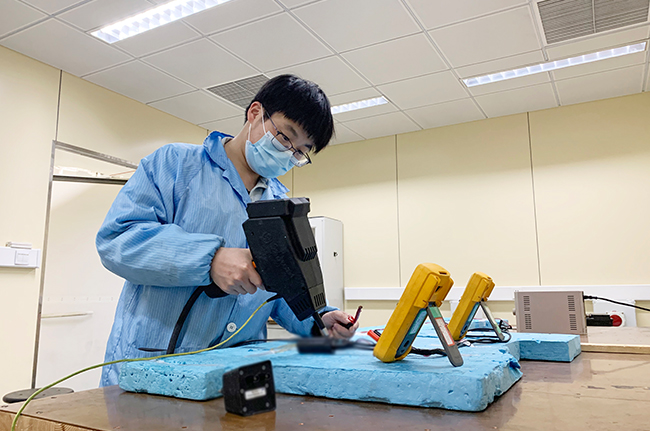 封控的壓力迫在眉睫,但深圳可靠性與環境試驗實驗室團隊卻沒有放棄,趕在封控前用最短時間緊急協調人員堅守公司值班,以保障某通信龍頭企業試驗項目如期進行。很快,由于天千、張澤森、黃小青、劉文杰、陳偉、陳志敏、楊朝彬、巫勝偉、管瀏河、蔡雪柔、李觀明、陳武柯等工程師組成的堅守隊伍迅速到位,按白天、夜晚兩班倒無縫銜接。計量實驗室尹鯤鵬、梁忠偉、李凱、黃英君、官潮杰、羅仕鵬、李燚等工程師也同步緊鑼密鼓地對公司設備進行計量校準,以支撐各項目順利開展。7×24小時,工作、生活都在公司不得外出,對保障團隊來說是個不小的考驗,但這支年輕的隊伍依然堅守崗位,不負客戶所托。