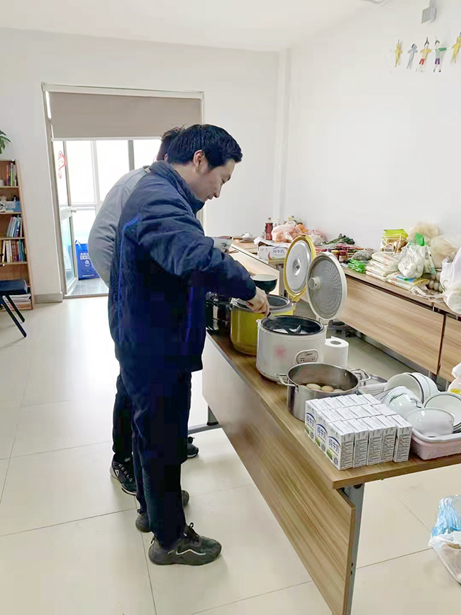 人手問題解決后,另一個挑戰擺在了大家面前——如何保障嘉定、浦東場地共四十多名留企員工的溫飽、休息等生活需求?此時,企業管理副經理張雨燊義無反顧站了出來。為保障員工正常生活,他從3月中旬起就堅守崗位,并在3月底開始,吃、住皆在公司門衛室,默默付出卻從未抱怨。每天除了安排員工核酸檢測、抗原自測,對辦公場所進行3次以上消殺,還要關注園區政策和網絡上各種消息動態,爭取政府物資補助,尋找物資供應渠道進行采購,保障防疫工作的順利開展、公司補給、實驗室正常運營。“在這個特殊時期,公司上下一心,每個人都貢獻出了力量共渡難關。安全管理是我的本職工作,我曾對公司和同事做出過承諾,就必須把承諾兌現。”張雨燊說。