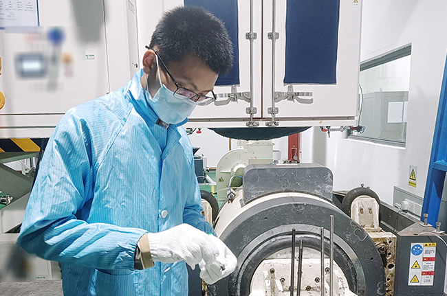 工程師王非進行測試準備