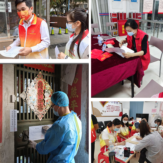 3月15日起至今,廣州總部各黨支部組建了以黨員為主體、輻射帶動職工群眾的125人支援隊伍,分三批下沉社區支援,協助核酸檢測、信息登記排查、宣傳引導等工作。