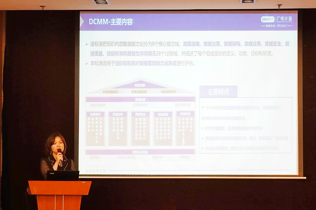 DCMM是我國數據管理領域首個國家標準,開展DCMM貫標評估對企業發展、政府管理以及國家數據安全都有著重大意義和作用。廣電計量信息化服務事業部數字化咨詢副總監郭婧,圍繞“企業數字化轉型與DCMM”主題進行了分析與探討,從企業數字化轉型現狀、DCMM標準解讀與貫標流程、DCMM賦能企業數字化轉型等方面進行了解讀,尤其強調DCMM對企業指明發展方向、提升治理能力的重要性。