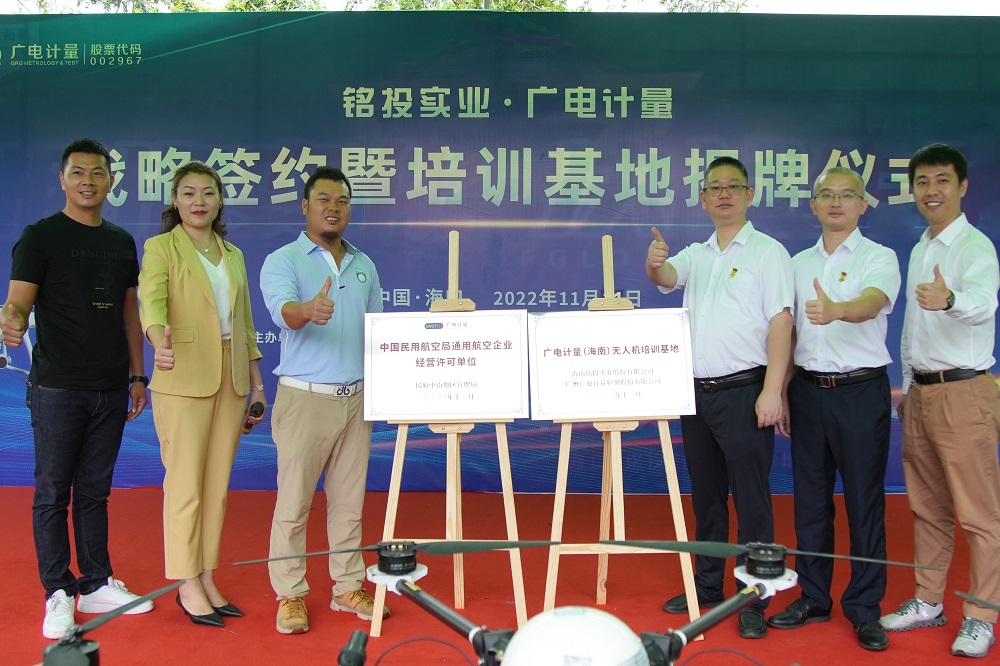 11月21日,廣州廣電計(jì)量檢測(cè)股份有限公司(簡(jiǎn)稱廣電計(jì)量,股票代碼:002967)與海南銘投實(shí)業(yè)股份有限公司(簡(jiǎn)稱銘投實(shí)業(yè))簽署戰(zhàn)略合作協(xié)議,并舉行了“廣電計(jì)量(海南)無人機(jī)培訓(xùn)基地揭牌儀式”。雙方將強(qiáng)強(qiáng)聯(lián)合、優(yōu)勢(shì)互補(bǔ),為海南省無人機(jī)產(chǎn)業(yè)培養(yǎng)高素質(zhì)勞動(dòng)者和技術(shù)技能型人才,共同助推海南省無人機(jī)通用航空事業(yè)高質(zhì)量發(fā)展!