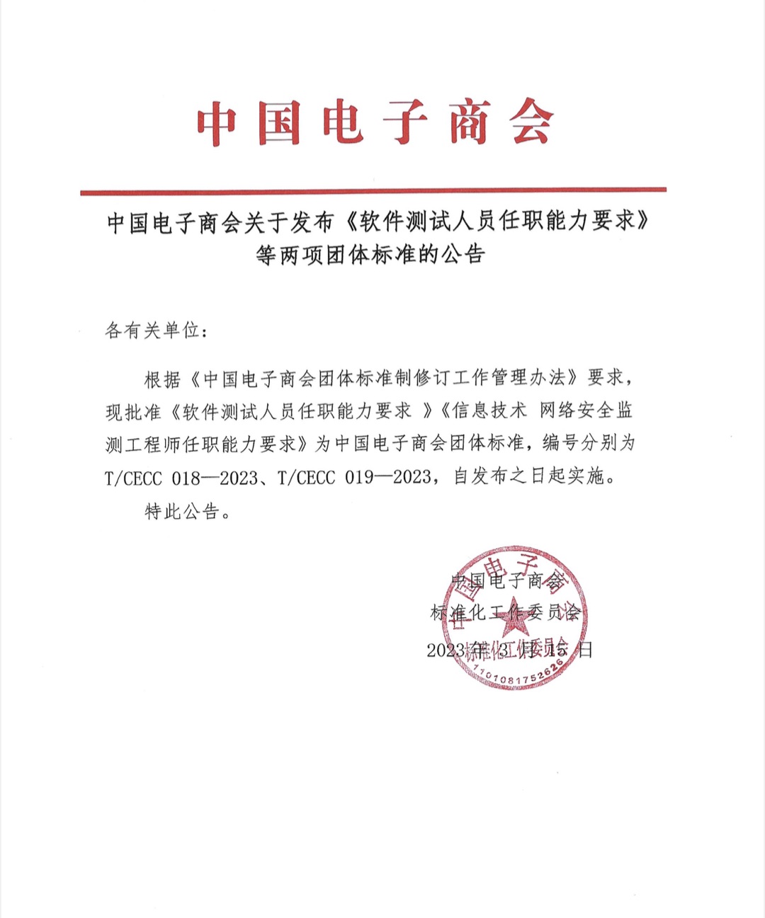 3月15日,由廣電計量主編的兩項團體標準T/CECC 018—2023 《軟件測試人才技能評價規(guī)范》和T/CECC 019—2023 《信息技術 網絡安全監(jiān)測工程師任職能力要求》正式發(fā)布并實施,將為技術人員能力提升與職業(yè)規(guī)劃、企業(yè)單位高端人才引進提供參考指導,為各組織數字化轉型、數字中國建設注入強勁人才動力。