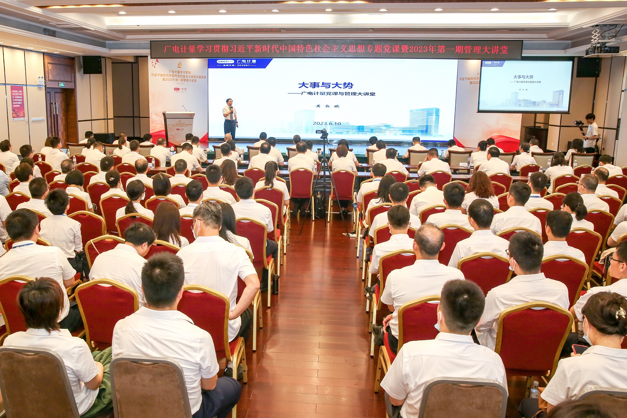 為深入學(xué)習(xí)貫徹習(xí)近平新時代中國特色社會主義思想和黨的二十大精神,充分發(fā)揮“頭雁”引領(lǐng)及思想政治工作統(tǒng)一思想、凝聚共識、團結(jié)奮斗的重要作用;同時為營造管理干部自我學(xué)習(xí)、互助學(xué)習(xí)的文化氛圍,促進(jìn)管理干部探討經(jīng)營管理中的難點、交流工作經(jīng)驗、傳播先進(jìn)管理思維、總結(jié)最佳管理實踐,助推公司發(fā)展,6月10日,廣電計量學(xué)習(xí)貫徹習(xí)近平新時代中國特色社會主義思想專題黨課暨2023年第一期管理大講堂在廣電平云廣場舉行。