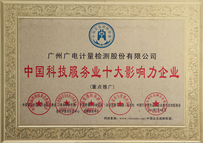 GRGT被評(píng)為“中國(guó)科技服務(wù)業(yè)十大影響力企業(yè)” 及 “中國(guó)計(jì)量檢測(cè)服務(wù)領(lǐng)軍品牌”