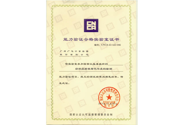 能力驗(yàn)證的滿意結(jié)果證明了我司在紡織品及電子電器產(chǎn)品檢測能力滿足國家相關(guān)標(biāo)準(zhǔn)要求,具備了良好的技術(shù)底蘊(yùn)和完善的質(zhì)量保障體系,能夠確保檢測結(jié)果的質(zhì)量。