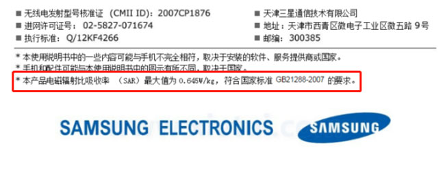 國際科學界用比吸收率(SAR)值來對手機輻射進行量化和測量。目前,根據(jù)中國國家強制標準GB 21288-2007,任意10克生物組織、任意連續(xù)6分鐘內(nèi)的平均比吸收率(SAR)值不得超過2.0W/kg。如不少手機廠商都會向大眾展示其SAR的信息: