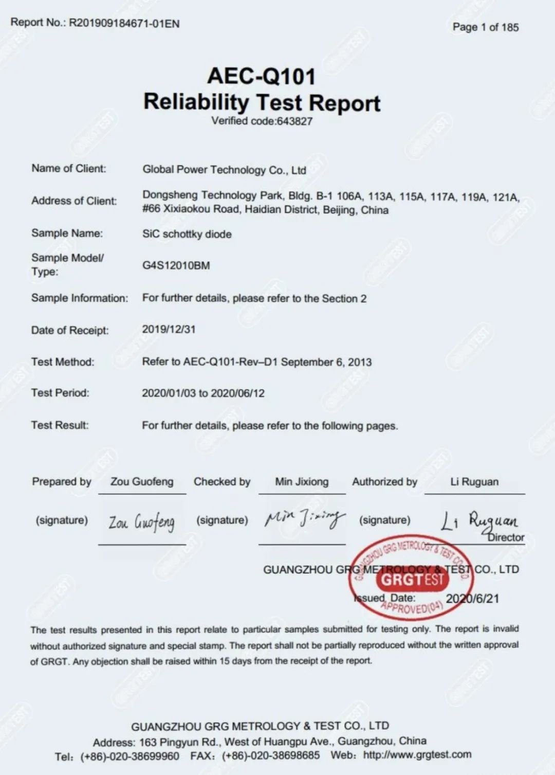 元器件廠家需要進(jìn)軍車用領(lǐng)域必須通過(guò)車規(guī)標(biāo)準(zhǔn)驗(yàn)證。早在2019年,廣電計(jì)量就與泰科天潤(rùn)展開了關(guān)于車規(guī)標(biāo)準(zhǔn)驗(yàn)證的合作。在首次合作中,廣電計(jì)量為泰科天潤(rùn)自研的1200V碳化硅肖特基二極管產(chǎn)品提供了AEC-Q101車規(guī)驗(yàn)證。第三代半導(dǎo)體器件作為行業(yè)新興產(chǎn)品,在國(guó)內(nèi)幾乎無(wú)相關(guān)車規(guī)驗(yàn)證先例可循。