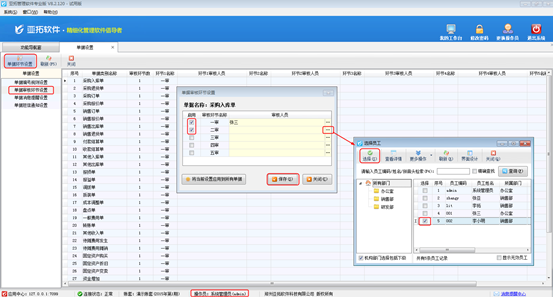 亞拓管理軟件和亞拓倉庫管理軟件都可以設置每類單據的審核環節,最多支持5級審核。單據多級審核是對業務單據處理時采用多人多級別順序審核的操作。多級審核的需求在實際業務中是非常普遍的。對于同一個業務單據,除了對單據的業務描述、業務數據的正確性作出審核之外,還要對該項業務的可行性、合法性、合理性等進行審核的操作。同時,多級審核也是崗位負責制的體現,對企業人員職責管理起到很重要的作用。多級審核相對單級業務審核而言,業務規范必須嚴謹,對企業管理水平的要求較高,適用于企業管理級次比較復雜的企業。