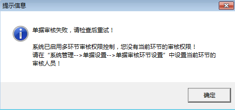 操作員“張三”沒有“二審”權限,進行“一審”后,再點擊“審核”按鈕,會提示圖5所示的提示信息。
