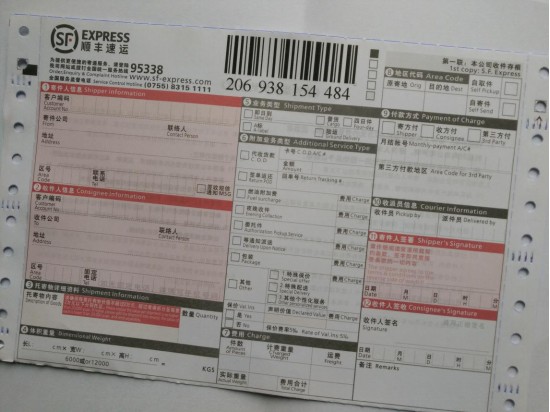 (2)通過手機拍照:如果不能進行掃描,那你就用手機或相機拍一張比較清晰的快遞單圖片(建議盡量用掃描儀掃描,拍攝的圖片效果不太好會影響打印效果),同時需要用尺子量一下快遞單的長度和寬度發給我們。拍攝時也要求放正且清晰,如果拍攝的照片或掃描的圖片是傾斜或者不完整的會造成打印出來的內容放置不準確,如下圖2、3所示: