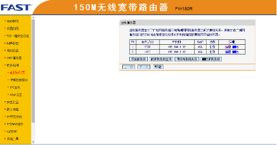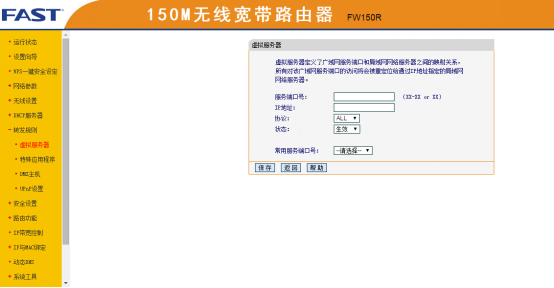 ①如果主機電腦是通過路由器上網,就需要在路由器上配置端口映射。(這一步驟需要對路由器進行配置,圖1和圖2為迅捷FAST 150M路由器的設置方法。每種路由器的配置稍有不同,可在購買動態IP解析服務后,聯系我們客服幫助進行遠程配置)