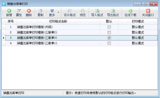 設置為默認格式:點“更多操作”—》“設置為默認格式”,可以將當前格式設置為默認格式,在單據窗口點“打印”—》“快速打印”時將使用默認打印格式進行打印輸出。