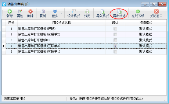 導出打印格式:可將選中的打印格式模板導出為文件。打印格式模板文件為特殊格式的文件,無法直接打印,只能在軟件中進行導入。