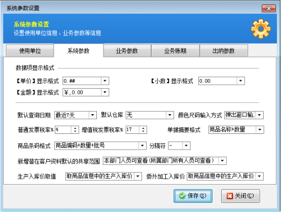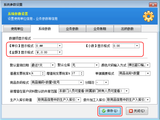 在系統(tǒng)參數(shù)中對(duì)“單價(jià)”、“小數(shù)”(數(shù)量)、“金額”選擇相應(yīng)的顯示格式后點(diǎn)擊“保存”按鈕即可,在軟件中這些數(shù)據(jù)項(xiàng)的顯示格式會(huì)改變。如圖3所示設(shè)置后,在圖4的銷售出庫單可看到相應(yīng)的數(shù)據(jù)項(xiàng)的顯示格式。
