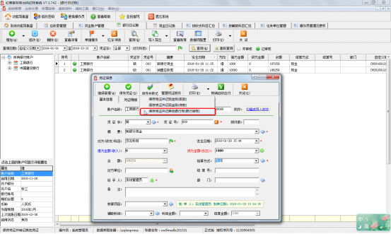 紅管家財務(wù)出納記賬軟件中可以記錄現(xiàn)金日記賬及銀行日記賬,并支持對銀行轉(zhuǎn)賬的情況記錄憑證,同城跨行轉(zhuǎn)賬、省內(nèi)異地同行轉(zhuǎn)賬、跨省異地同行轉(zhuǎn)賬、跨行異地轉(zhuǎn)賬等情況都有手續(xù)費的情況,那么在含有手續(xù)費的情況下該如何在財務(wù)出納記賬軟件中記錄憑證呢?