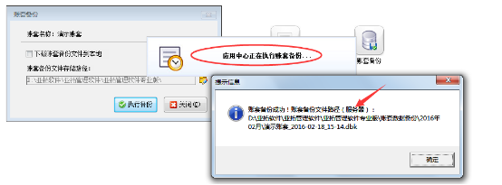 ①在點擊“賬套備份”后彈出的賬套備份窗口中直接點擊“執行備份”按鈕進行備份賬套操作時,賬套備份文件的實際存儲路徑是存儲在作為服務器(我們將安裝“亞拓管理軟件應用中心”或者是插有加密鎖的那臺電腦稱為“服務器”)的那臺電腦的軟件安裝目錄下的,而不是備份到當前操作員所登錄的客戶端所在電腦上的。