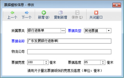 票據(jù)名稱:必填項,直接輸入票據(jù)模板的名稱。