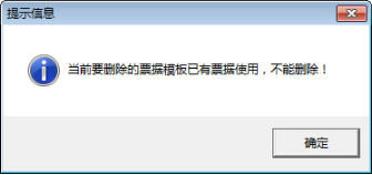 如果當(dāng)前票據(jù)模板已被使用(用此模板開過票據(jù)),系統(tǒng)提示如下圖所示,票據(jù)模板就不能被刪除。