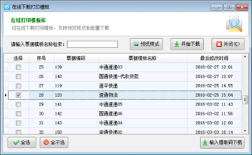 正式版用戶如果定制了票據(jù)模板,可以通過輸入提取碼的方式下載指定的票據(jù)模板,如下圖所示: