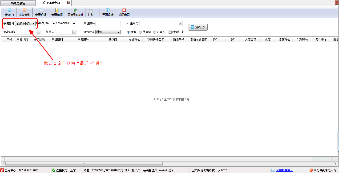 亞拓管理軟件(精細(xì)化管理軟件、進(jìn)銷存管理軟件、記賬軟件)及紅管家倉庫管理軟件內(nèi)都包含了統(tǒng)計查詢功能(采購單匯總表、銷售單匯總表、銷售單明細(xì)查詢、銷售毛利匯總等統(tǒng)計查詢報表),軟件內(nèi)統(tǒng)計查詢功能默認(rèn)的查詢?nèi)掌跒椤白罱?個月”(如下圖一所示),但是如果需要修改默認(rèn)查詢?nèi)掌冢撊绾涡薷哪兀肯旅嫖覀円?A title="" href="http://www.hjx188.com/erp/index.html">亞拓管理軟件專業(yè)版為例詳細(xì)介紹下軟件內(nèi)如何修改默認(rèn)查詢?nèi)掌凇?/P>