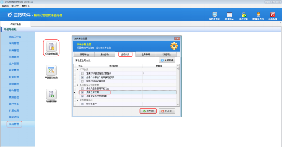 在功能導航窗中點擊“系統管理”—》“系統參數配置”,即可進入“系統參數設置”界面,點擊“業務參數”,如圖1所示,在系統安全及權限參數內可以打鉤啟用“啟用倉庫權限”參數。