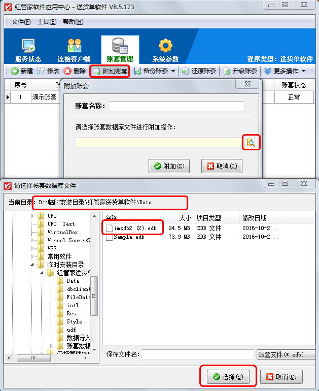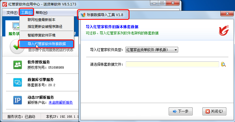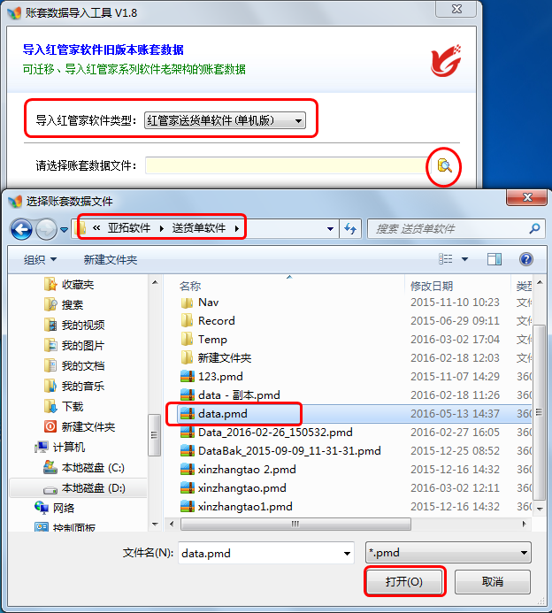 圖二 導(dǎo)入紅管家送貨單軟件(單機(jī)版)賬套數(shù)據(jù)文件