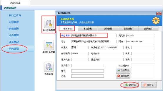 修改使用單位名稱,需在功能導(dǎo)航窗選擇系統(tǒng)管理—》系統(tǒng)參數(shù)配置—》使用單位信息中修改后保存即可。如下圖2所示: