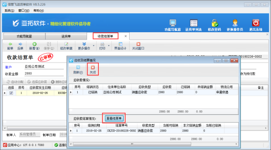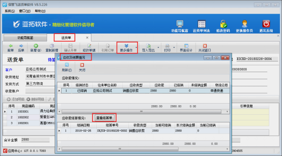 本篇文章以信管飛送貨單為例,示范下如何修改應(yīng)收款已結(jié)銷的送貨單單據(jù),打開應(yīng)收款已結(jié)銷的送貨單單據(jù),在更多操作下點(diǎn)擊“查看應(yīng)收款及結(jié)銷情況”,彈出應(yīng)收款及結(jié)銷情況界面,點(diǎn)擊“查看結(jié)算單”可以打開本單據(jù)的應(yīng)收款結(jié)算單界面,如下圖2、3所示: