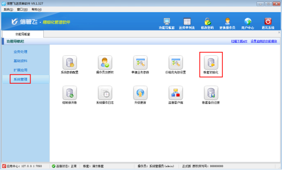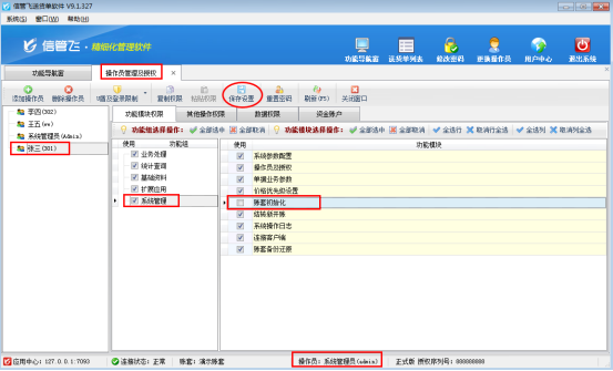 信管飛送貨單軟件、信管飛RMS、信管飛倉(cāng)庫(kù)管理軟件、信管飛出納記賬軟件中都可以進(jìn)行賬套初始化,在正式使用軟件過(guò)程中,為了防止操作員不小心初始化賬套,可以對(duì)操作員設(shè)置操作權(quán)限。下面我們以信管飛送貨單軟件為例來(lái)演示一下如何設(shè)置操作員不可賬套初始化。