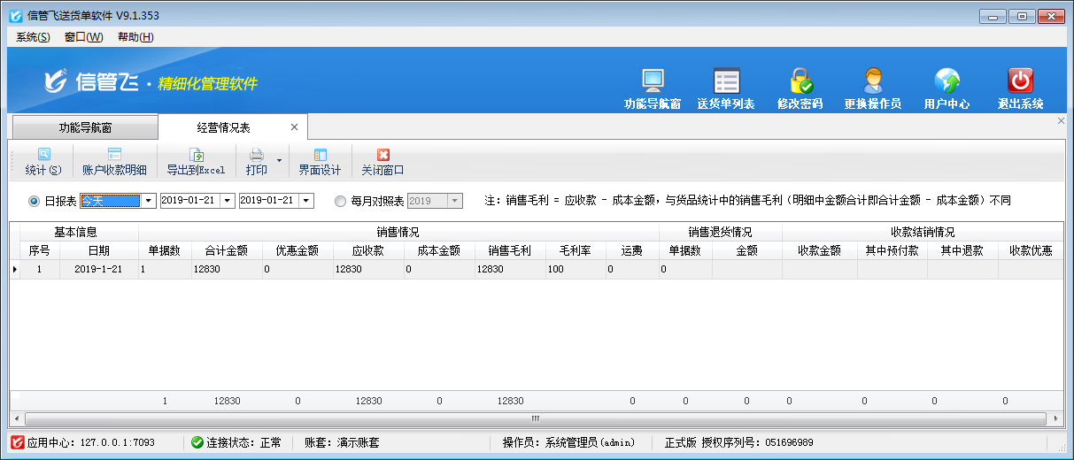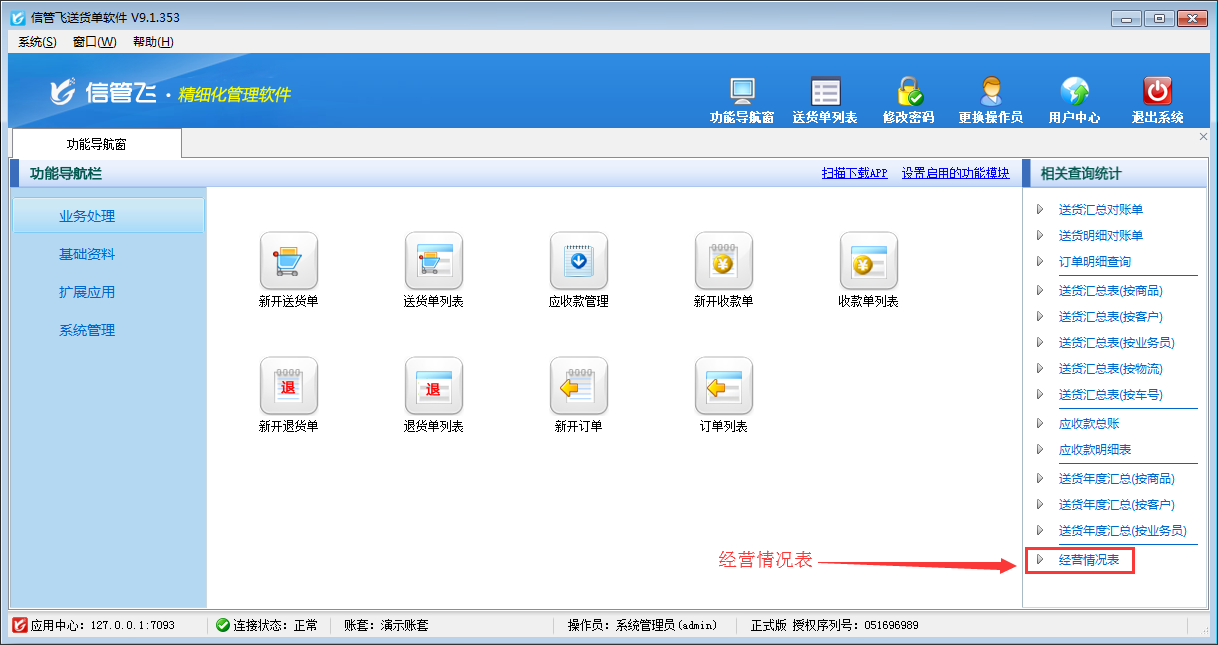 歡迎免費(fèi)下載試用這款可設(shè)置操作員不可查看經(jīng)營情況的送貨單軟件:信管飛送貨單軟件。