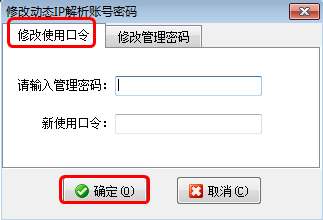 在修改密碼窗口,點擊“修改管理密碼”頁面,輸入當前密碼、新密碼、確認新密碼后,點擊“確定”按鈕,就可以修改動態(tài)IP解析服務的管理密碼。如下圖3所示: