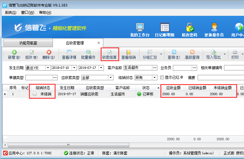 演示視頻觀看鏈接:收款結算時如收款金額大于結銷金額如何處理演示視頻
